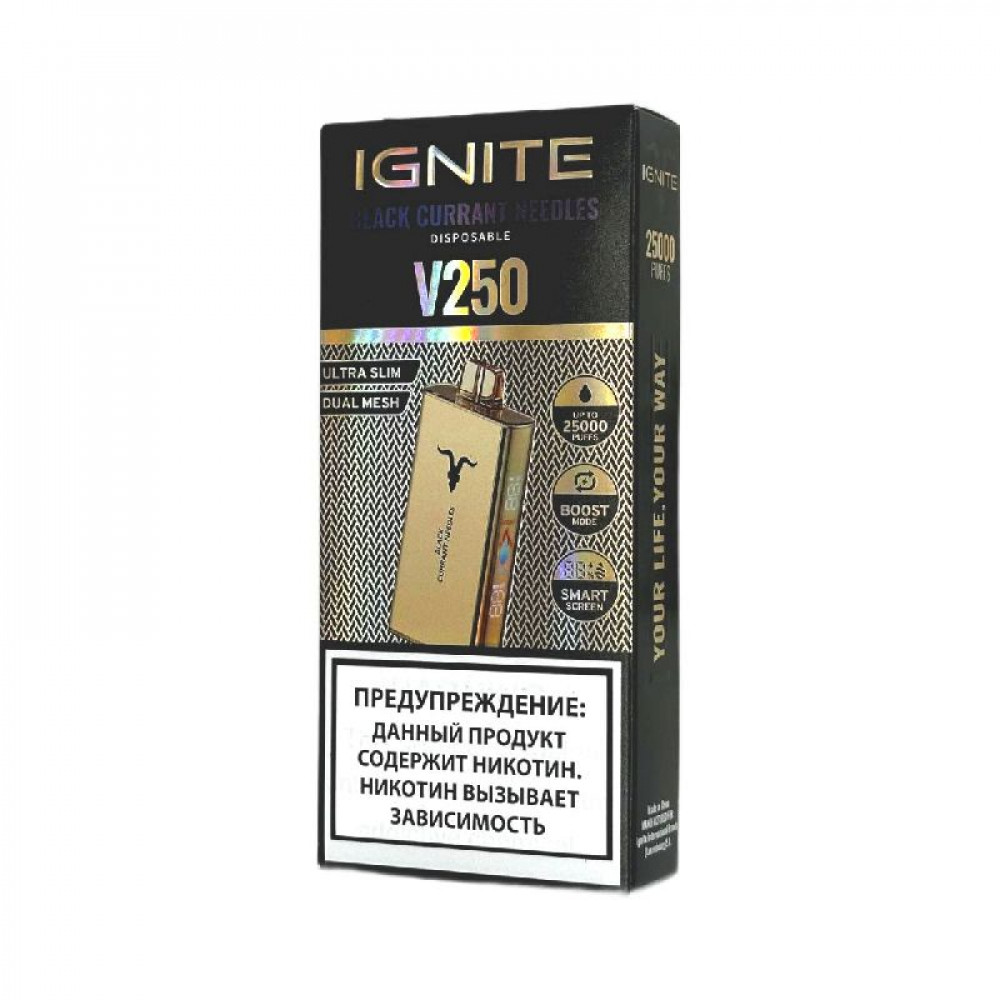 Электронная сигарета Ignite V250 Gold 25000 - Black Currant Needles (Черная смородина хвоя) - купить в Ступино