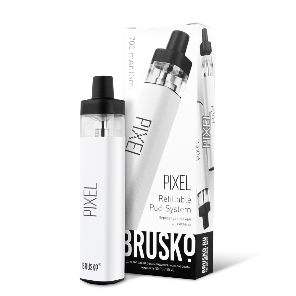 Перезаправляемая Под-Система Бруско Пиксель (Brusko Pixel) 700 mah, Белый - купить в Ступино